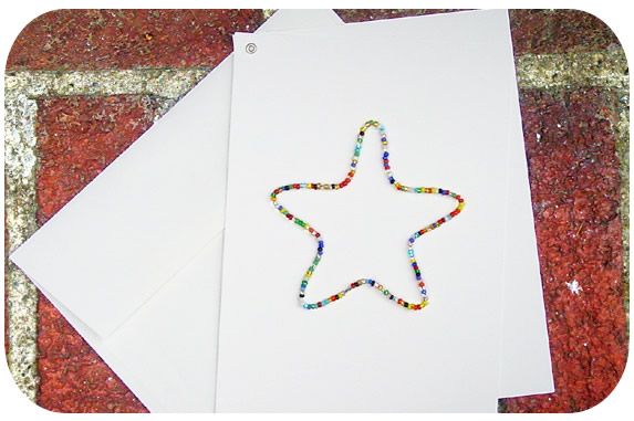 - wire, colored beads, paint (paper greeting card with rivit & envelope 5 1/4 in x 7 1/4 in)