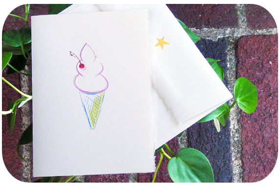 Where once were sweets in an ice cream shop, now are ice cream cones on Gytha cards! Our vanilla ice cream cone with a glittering cherry on top is sure to bring a glow to anyones heart.