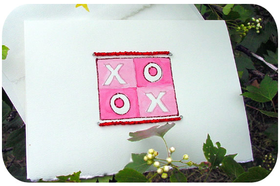 Hugs and Kisses.... Bring familiarity to your loved one with Gytha's hand painted hugs and kisses greeting card. Our loving hand painted x's and o's are framed and personalized with classic red beads!