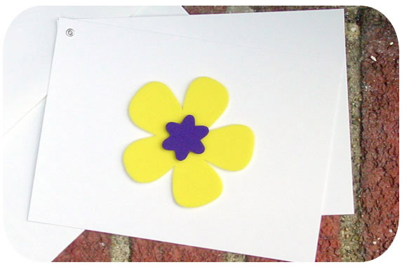 Bring a smile full of happiness to someone's face with our subtle handmade thinking of you greeting card. Our personalized yellow and purple foam flower gives that subtle touch you are looking for.