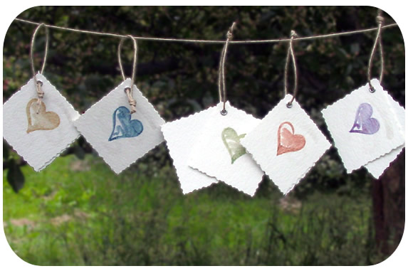 Ready to hold love notes, holiday notes and more- Nothing's better than Gytha's set of five heart gift tags for many occasions! Each tag is hand crafted with on of our fabulous yellow, green, blue, purple or copper metallic hearts. (Sold in packs of 5 tags)