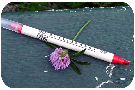 Sophisticate your greeting with one of these four fabulous calligraphy pens by Zig Memory System. Pens contain pigment ink and are photo safe, acid-free, archival quality, lightfast, waterproof, fade-proof and non-bleeding.