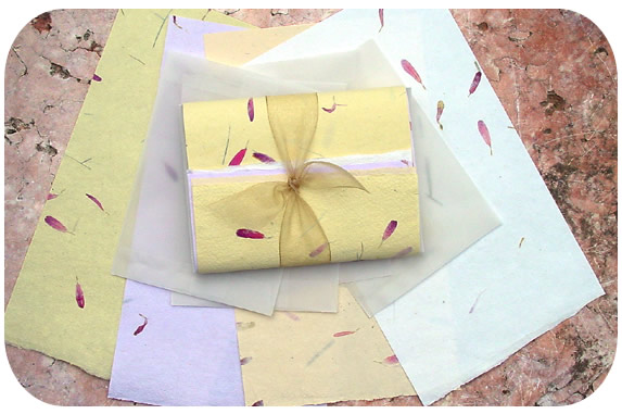 - handmade (India flower paper & translucent vellum envelope 6 1/2 in x 4 3/4 in)